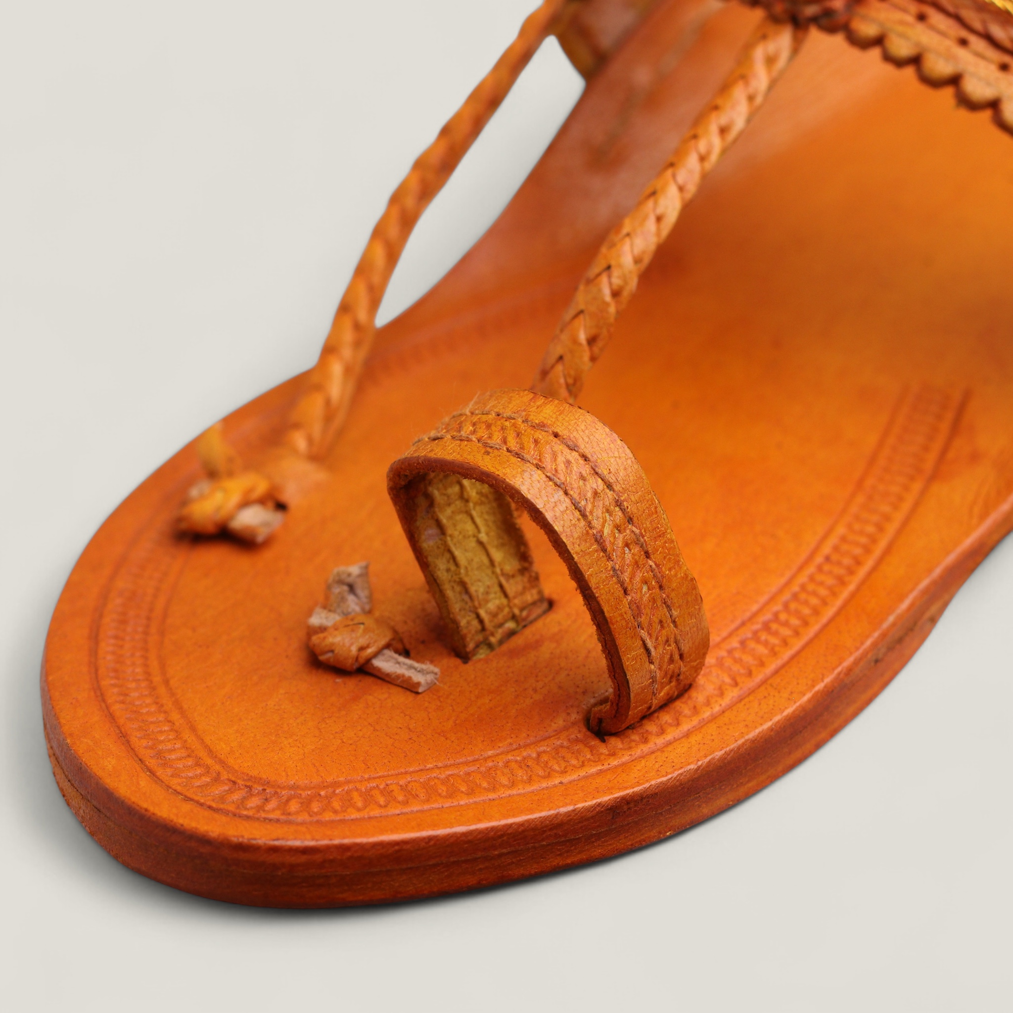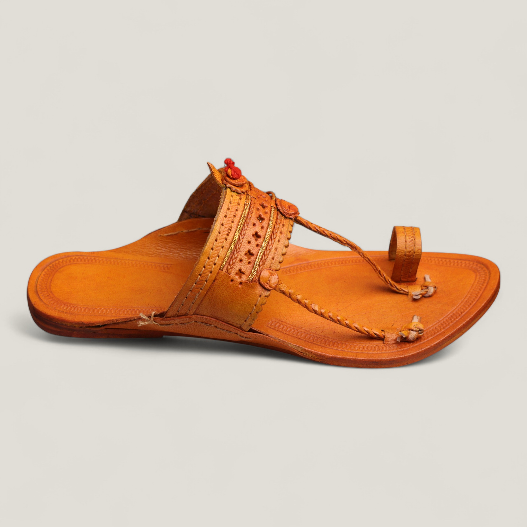 Brown Angutha Patta Nokwali Bhingri Kolhapuri Chappal
