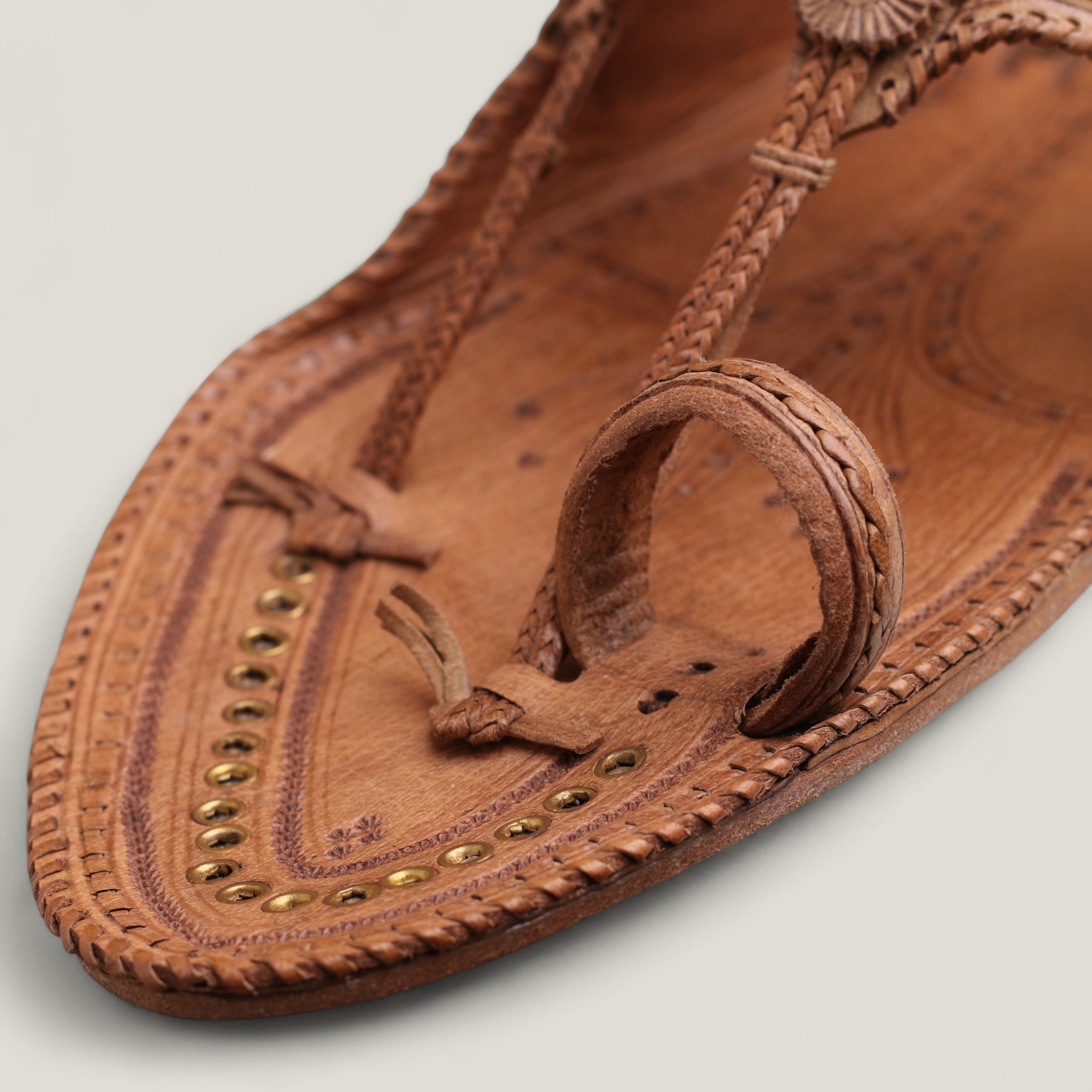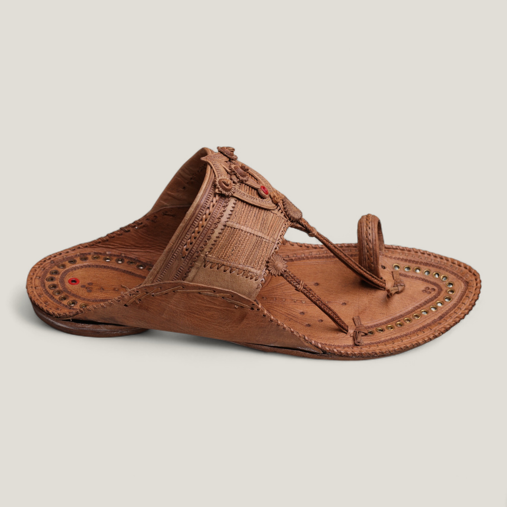 Brown Angutha Patta Nokwali Bhingri Kolhapuri Chappal