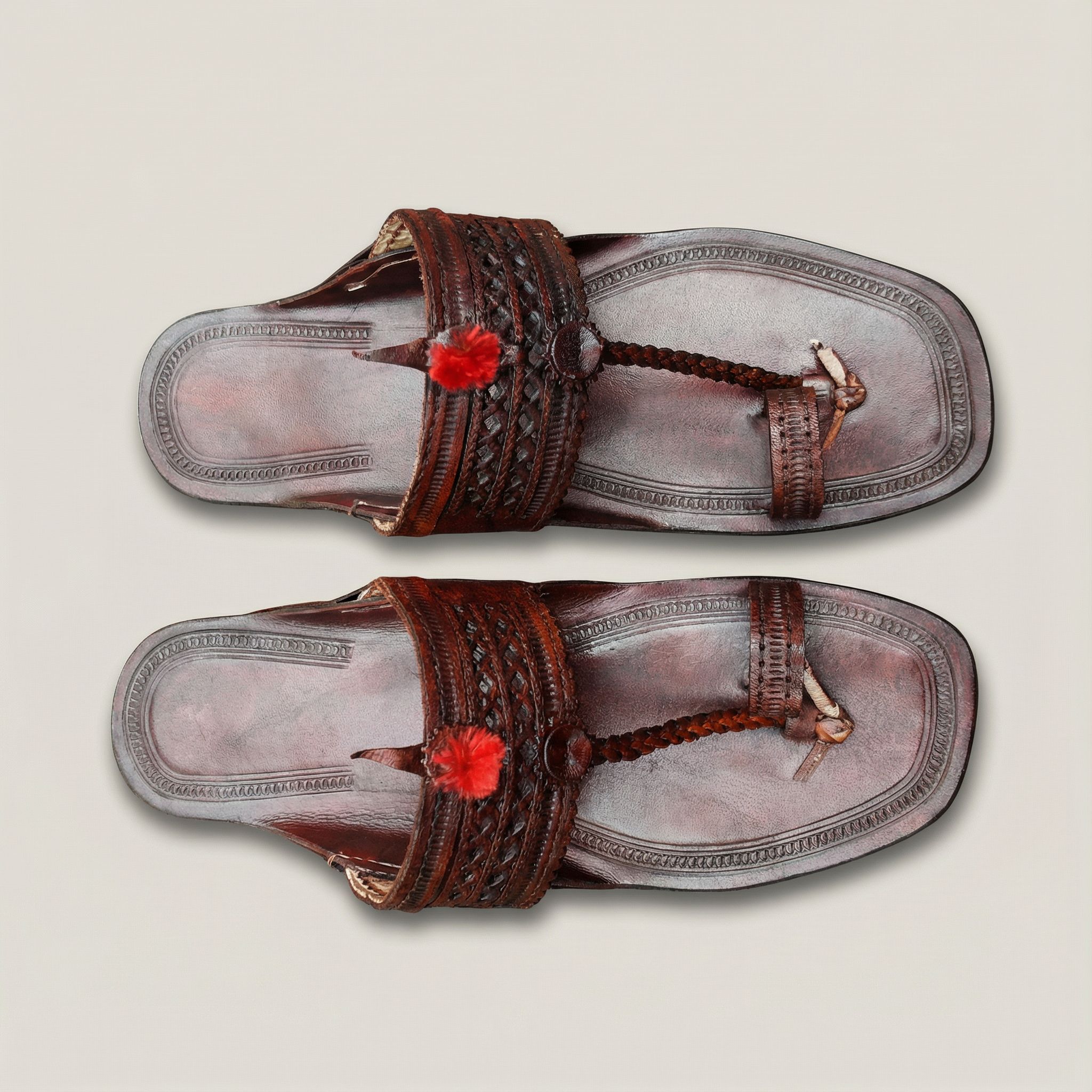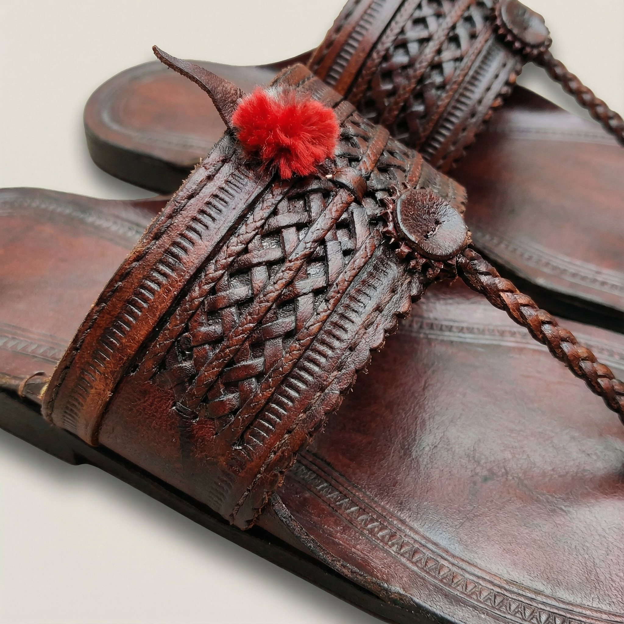 - Vegetable-Tanned Leather: We use only premium buffalo or cow hide tanned with natural dyes (like Harda and Babul). This process ensures the leather is free from harmful chemicals and is safe for sensitive skin.